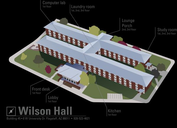 Wilson is a coed, traditional-style residence hall for primarily first-years and sophomores. It is centrally located on Flagstaff's campus and offers a quieter living experience. Just steps from classes, dining options, and a nearby bus stop makes for quick trips anywhere on campus.