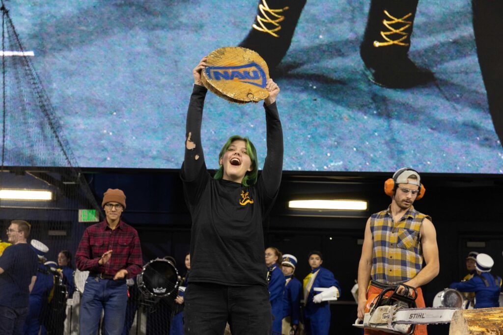 When the Lumberjacks score, you’ll hear the chainsaw roar. A slice from a log (called a tree cookie) is cut on the field to celebrate touchdowns, thanks to the Logging Sports Club. It’s loud. It’s proud. It’s NAU tradition.