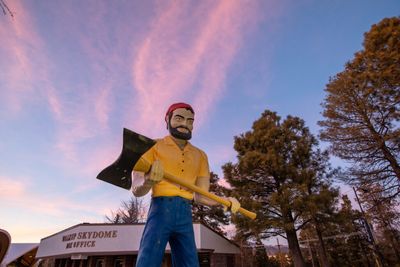 The Louie statue outside the J. Lawrence Walkup Skydome has a history tied to Route 66 and a local cafe. Originally, the statue was one of two "Muffler Men" created by Prewitt Fiberglass, designed to attract attention on Route 66.