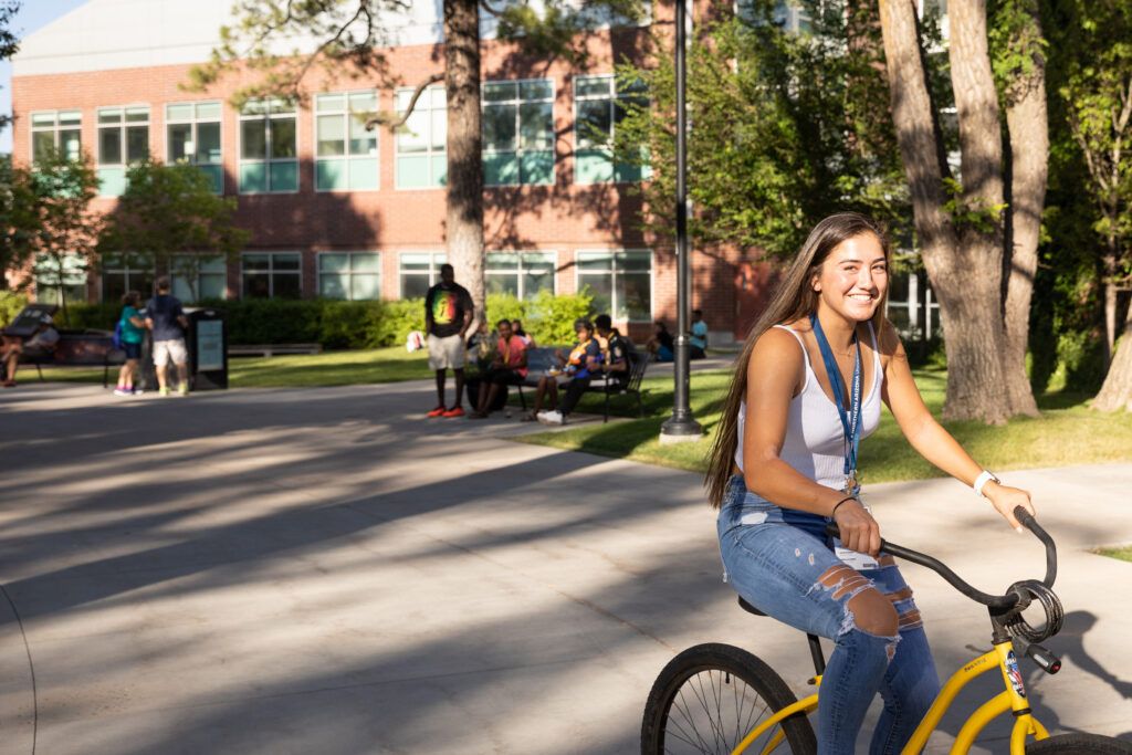 The Yellow Bike Program provides free bike rentals to NAU students, staff, and faculty to promote sustainable transportation on campus.